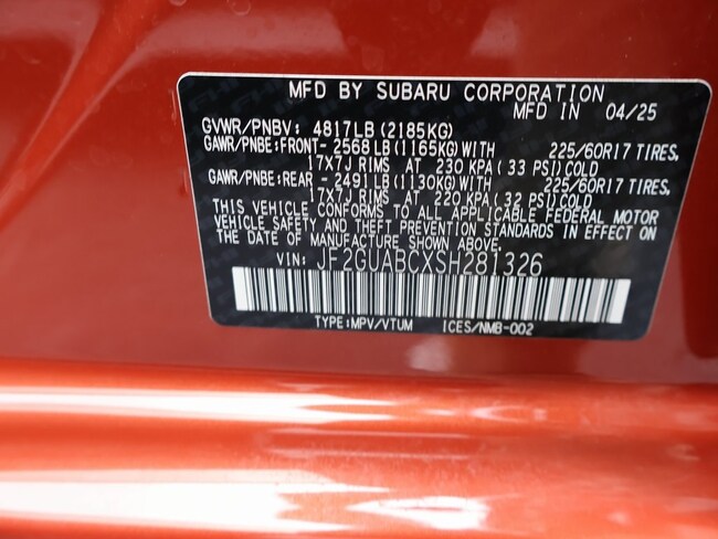 - VIN : JF2GUABCXSH281326