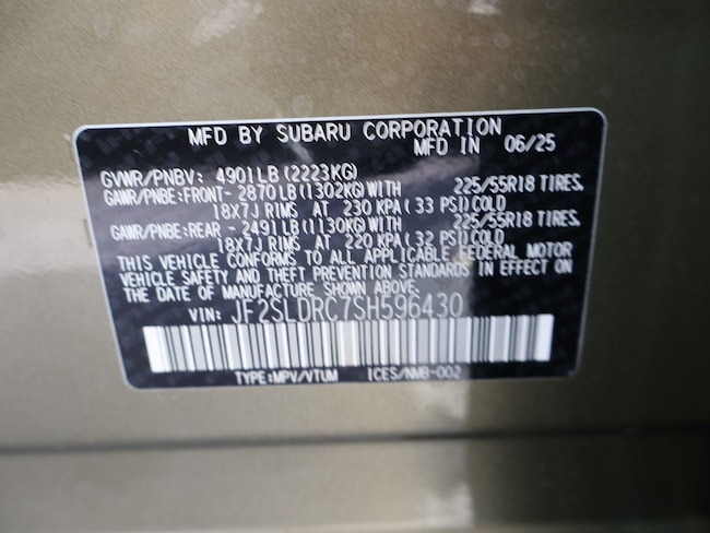- VIN : JF2SLDRC7SH596430