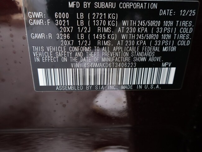 - VIN : 4S4WMAKD6T3406223