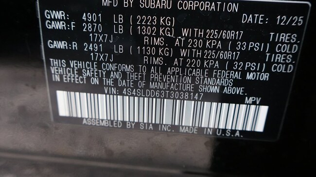 - VIN : 4S4SLDD63T3038147