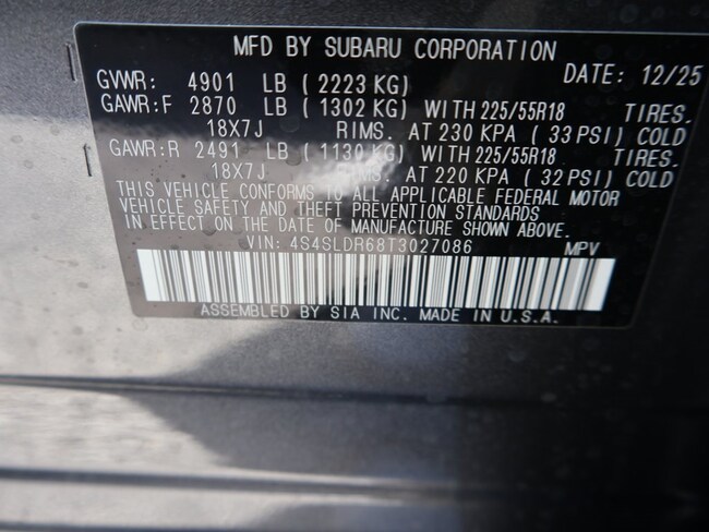 - VIN : 4S4SLDR68T3027086