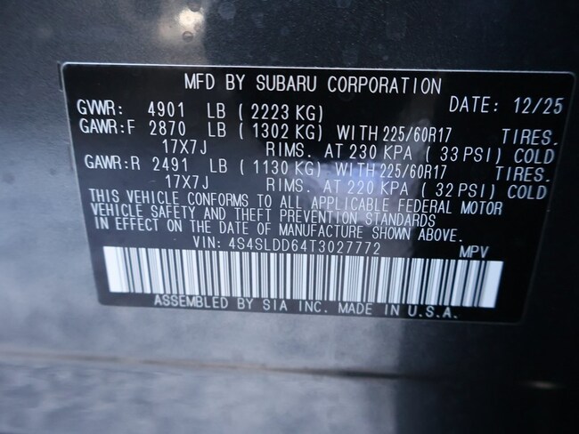 - VIN : 4S4SLDD64T3027772