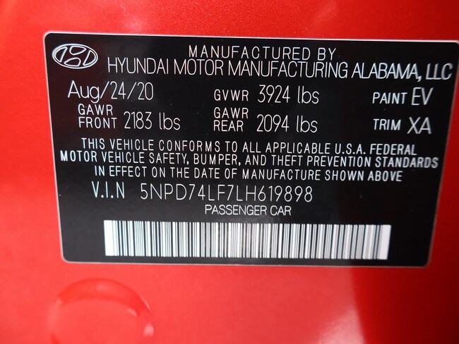 - VIN : 5NPD74LF7LH619898