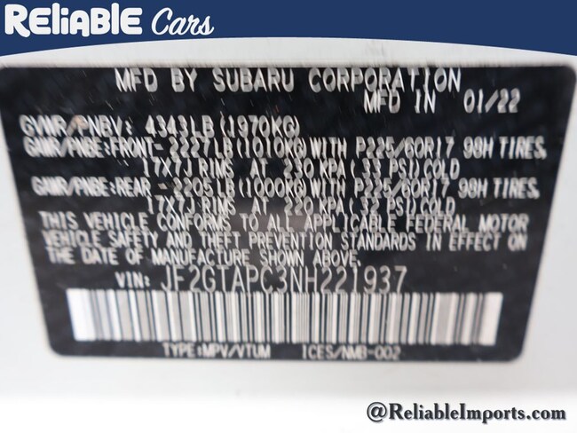 - VIN : JF2GTAPC3NH221937