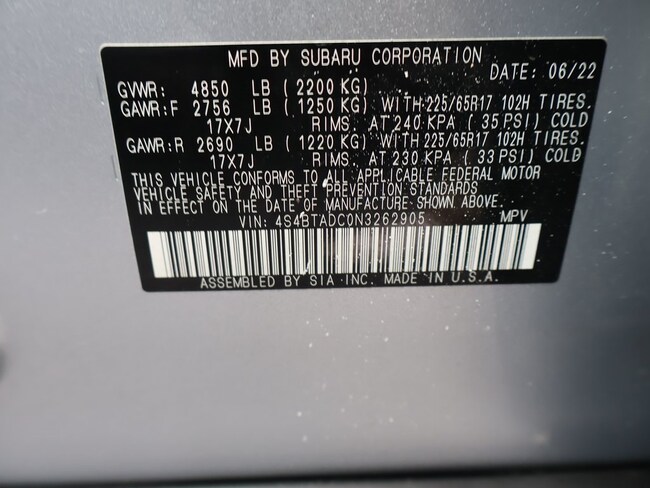 - VIN : 4S4BTADC0N3262905