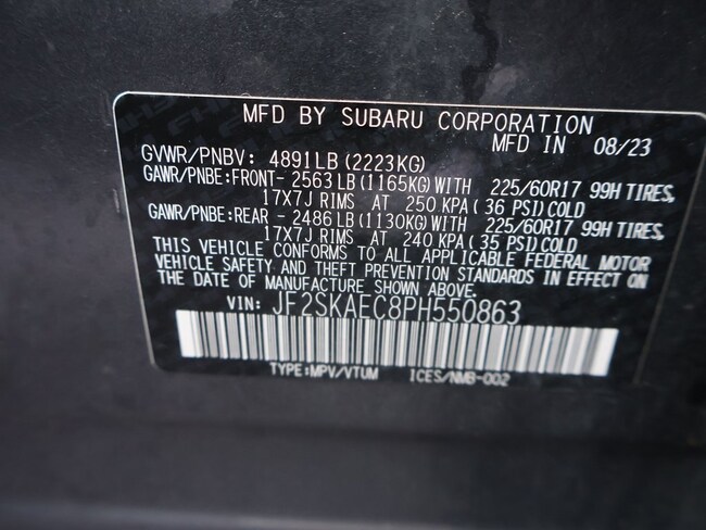 - VIN : JF2SKAEC8PH550863
