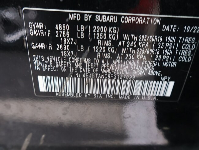 - VIN : 4S4BTANC8P3137099