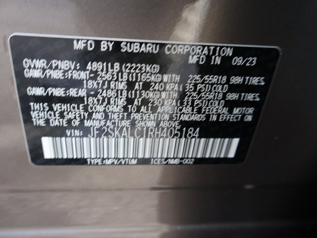 - Engine: 2.4L H-4 cyl