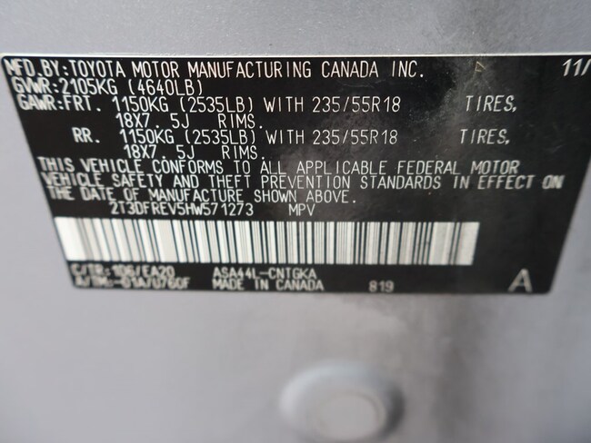- VIN : 2T3DFREV5HW571273
